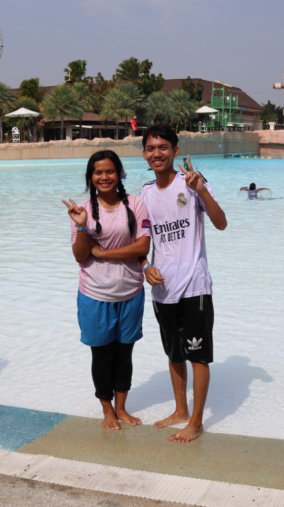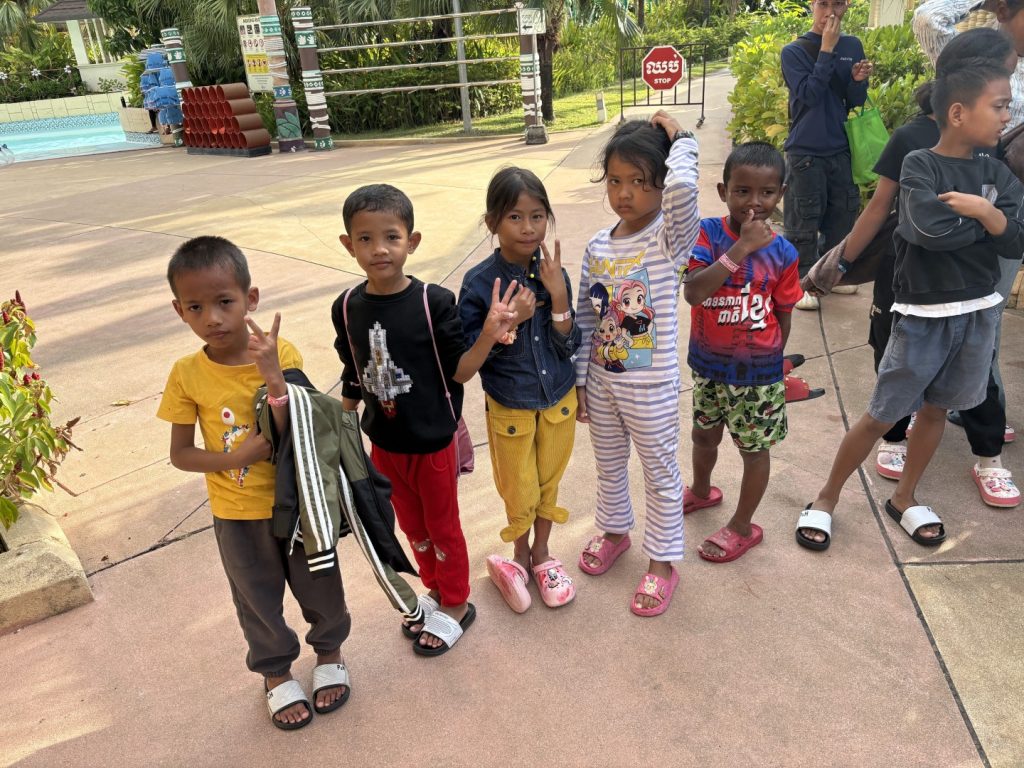 Am 11. Januar, unserem letzten gemeinsamen Tag, nahm ich die Kinder mit in den Wasserpark von Phnom Penh. Einen ganzen Tag lang die Füße im Wasser, getragen von Freiheit und fröhlichem Lachen. Doch der Abschied war einmal mehr schmerzlich. Jedes Mal, wenn ich sie verlasse, bleibt ein Teil meines Herzens bei ihnen … und ihr Licht begleitet mich noch lange.